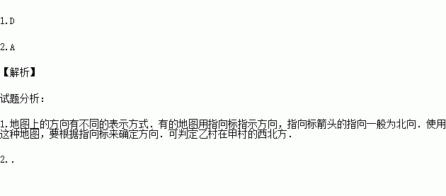 C.乙村在甲村的正北方 D.乙村在甲村的西北方