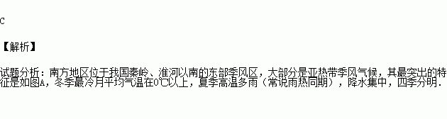 C.属亚热带季风气候 D.春旱严重,是半干旱地区