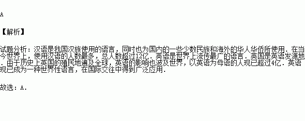 小红在网上结识了外国小朋友詹尼,詹尼自豪地说“我们的语言是世界上分布最广的语言.”小红说:“我们也很了不起,我们的语言是世界上使用人数最多的语言.”这两种语言分别是( )