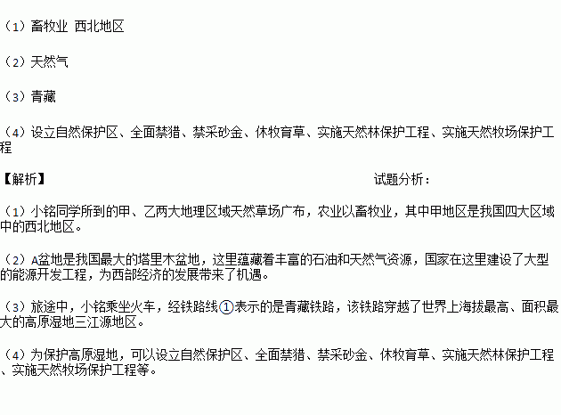 (3)ÂÃ;ÖУ¬Ð¡Ãú³Ë×ø»ð³µ£¬¾Ìú·ÏߢÙ_________Ìú·´©Ô½ÁËÊÀ½çÉϺ£°Î×î¸ß¡¢Ãæ»ý×î´óµÄ¸ßÔʪµØÈý½Ô´µØÇø¡£