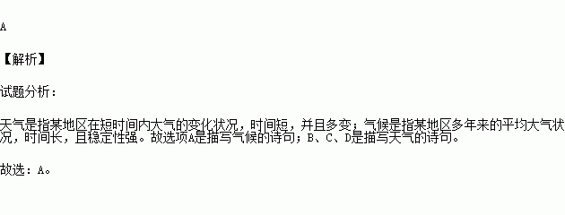 下列诗句中,描写气候的是( )