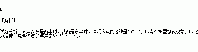 某点以东是西半球,以西是东半球,以南有极昼极夜现象,以北为温带,这点的地理位置是( )