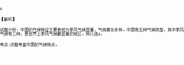 A.季风气候显著,气候复杂多样