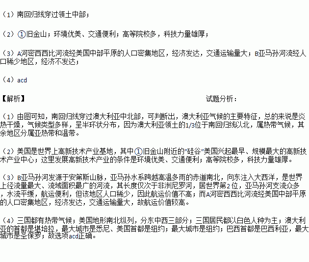 材料二:澳大利亚、美国本土、巴西简图