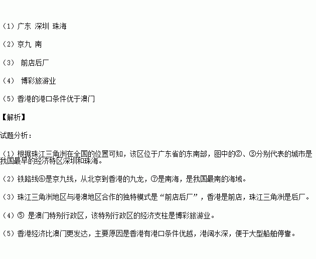 (1)珠江三角洲是对外开放的前沿,该区位于_____省东南部,图中的②、③分别代表的城市是________、____________。