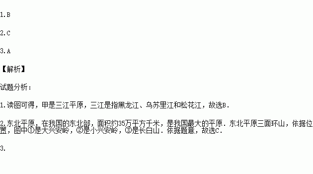 C.A大兴安岭B小兴安岭C长白山