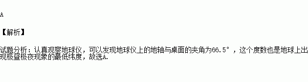 认真观察地球仪, 发现地球仪上的地轴与桌面的夹角为 ( )