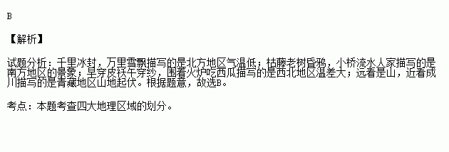 A.千里冰封,万里雪飘 B.枯藤老树昏鸦,小桥流水人家