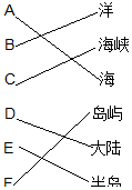 解答 解:读图可知,A为地中海,B为大西洋,C为直布罗陀海峡,D为非洲大陆,E阿拉伯半岛,F为马达加斯加岛.