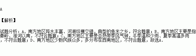 下列关于南方地区的叙述,正确的是( )