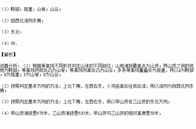 (4)甲、乙两山顶的相对高度是 米.