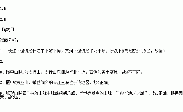 ①滚滚长江、滔滔黄河哺育了中华民族。②山脉构成我国地形的骨架,读下图完成下列各题。