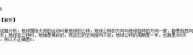 C.地球自东向西自转 D.地球自西向东围绕太阳转