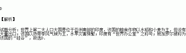 D.班加罗尔被称为该国的“硅谷”