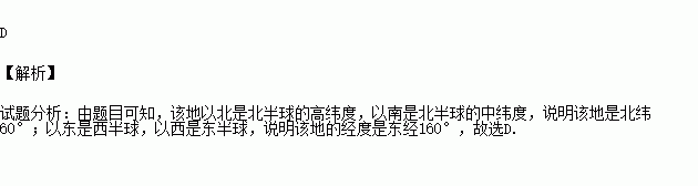 C.东经160°,北极圈 D.东经160°,北纬60°