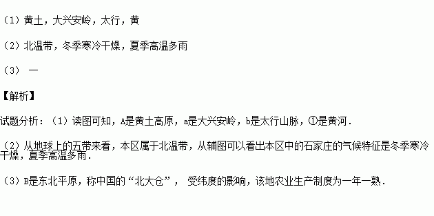 (3)平原B号称中国的“北大仓”,受纬度的影响,该地农业生产制度为一年 熟。