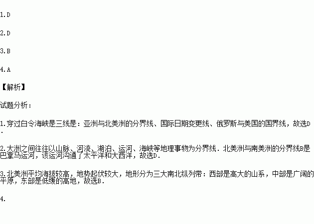 4.关于北美洲自然地理特征的叙述,正确的是