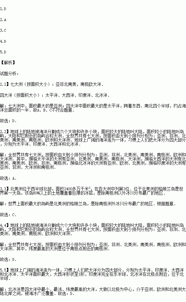 5.被北美洲、亚洲、欧洲包围的大洋是( )