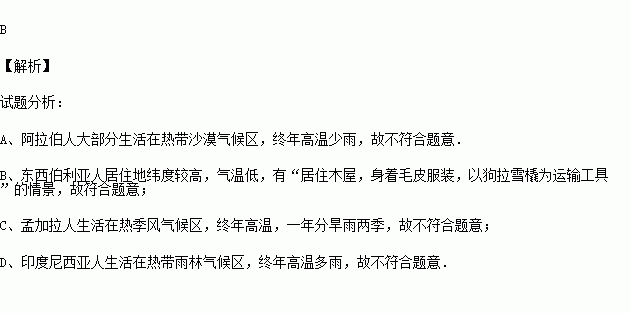 A.沙特阿拉伯的贝都因人 B.东西伯利亚的亚库特人