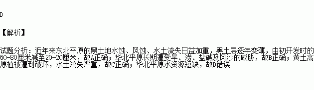 关于北方地区主要生态环境问题的说法,不正确的是( )