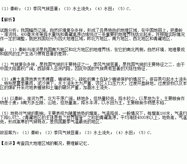 (1)我国南北两大地区的分界线是 (山脉)﹣淮河.