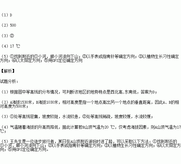 (4)若B山顶气温为20 ℃,仅考虑海拔因素,则A山顶气温为 。