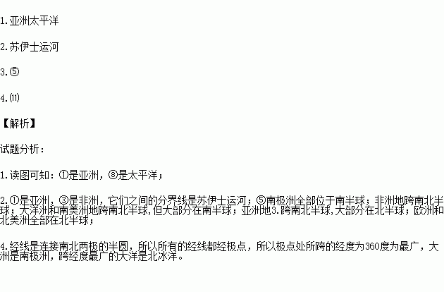 4.跨经度最广的大洋是。(填代号)网ZXXK]