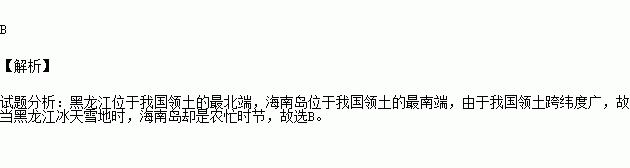 当黑龙江还是冰天雪地时,海南岛却是农忙时节,造成这种差异的主要原因是 ( )
