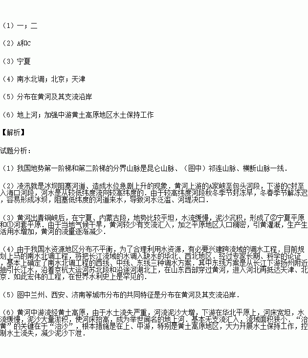 (6)由于泥沙淤积,黄河的下游成为 ,治理黄河的根本措施是 。