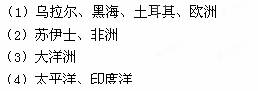 ⑴亚洲以________山脉、乌拉尔河、里海、大高加索山脉、________海和________海峡与A____________洲为界。