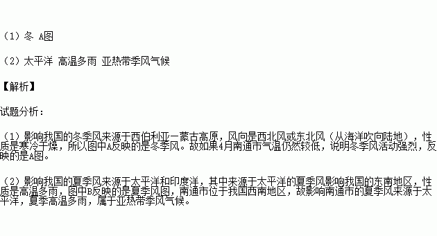 (1)我们南通地区4月的气候本应比较温暖,如果4月仍感觉像在过冬,原因是