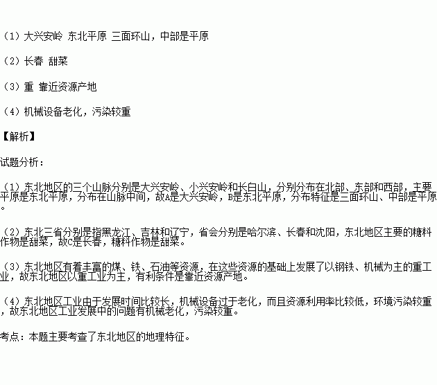 (4)东北是我国的老工业区,试举例东北在其主要产业部门的发展过程中,可能产生的问题有:_____________________________________________________________________。