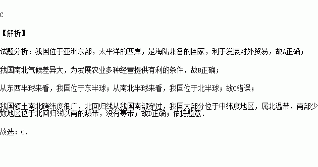 下列关于我国地理位置及其优越性的表述,不正确的是( )