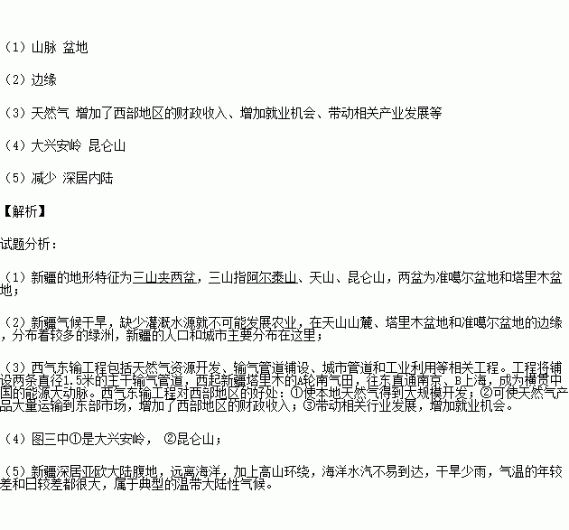 (2)根据图二分析,塔里木盆地的人口和城市主要分布在盆地________(边缘或内部)。