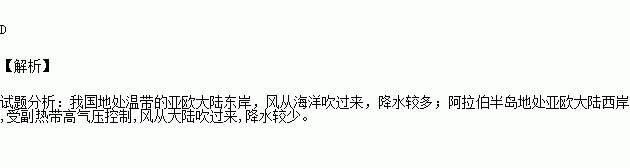 我国东南沿海地区与阿拉伯半岛同一纬度,都有北回归线穿过,可是阿拉伯半岛