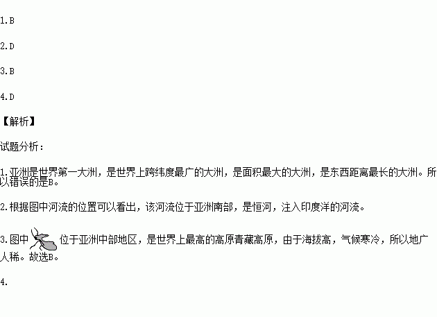 1.可以看出,亚洲的人口密度较大的地区是( )