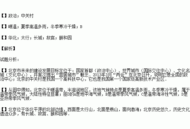 ¡¾Ð¡Ì⣲¡¿±±¾©Êд¦ÓÚ__________´ø£¨Î¶ȴø£©£¬ËüÊôÓڱȽϵäÐ͵Ĵó½ÐÔ¼¾·çÆøºò£¬ÕâÖÖÆøºòÀàÐ͵ÄÌØµãÊÇ£º £¬ÉÏͼÓë±±¾©Æøºò×îÏà·ûµÄÊÇ ¡£