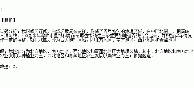 我国四大地理区域中农业发展以牧业为主的地区是( )