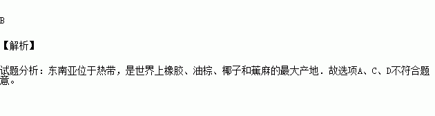 有一位外国留学生描述自己的家乡:“位于热带,是世界上橡胶、油棕、椰子和蕉麻的最大产地和最集中的地区”。据此回答下列各题: