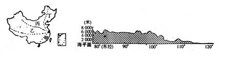 家住上海的王小华利用暑期游览祖国的大好河山,他设计的游览线路如下面左图。四条游览线路中,能得到右侧地形剖面示意图的是( )