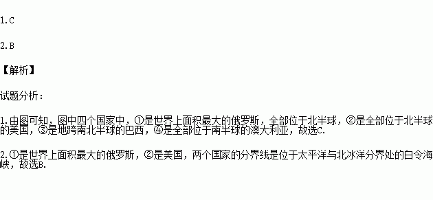 1.四个国家中,跨南北半球的是