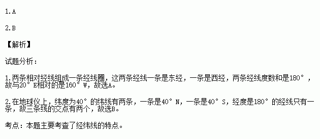 2.在地球仪上纬度为40°,经度为180°的点有几个( )