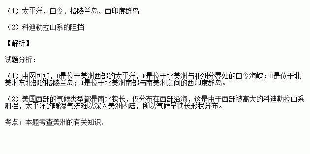 (2)美洲西部的气候类型都是南北狭长,仅分布在西部沿海,形成这种分布的主要原因是: