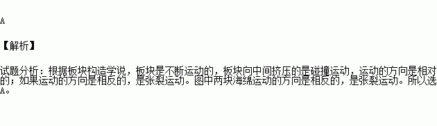 某同学利用铝盒、海绵、蜡烛、水等材料设计了一个模拟地球板块运动的实验(如下图)。实验中发现蜡烛加热区的水流上升,两块海绵向左右两侧方向运动。该实验模拟的板块运动形式为( )