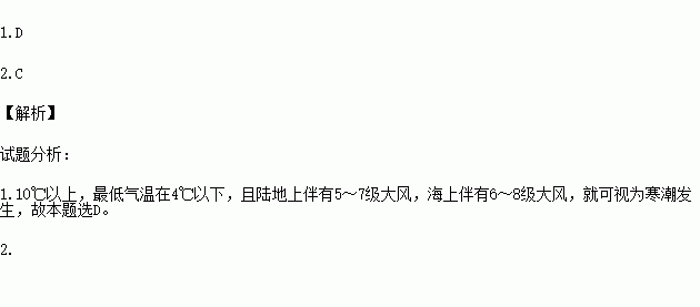 C、严寒、大风、霜冻D、狂风、巨浪