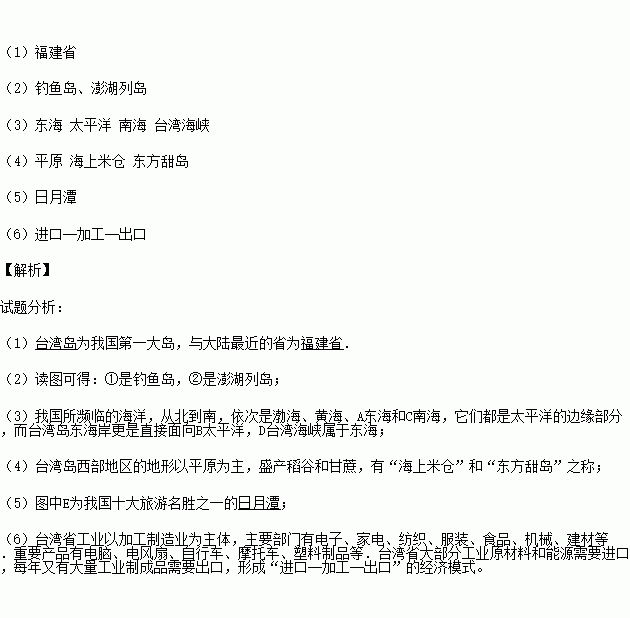 (1)台湾岛为我国与大陆最近的省为________。