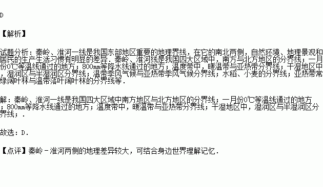 秦岭﹣淮河一线是我国重要的地理分界线,下列叙述错误的是( )