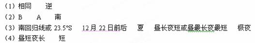 (3)当地球公转到A点时,太阳直射在 (纬线)上,日期通常是 。此时悉尼处于 季,其昼夜长短情况是 ;此时北极圈内可能出现 现象。
