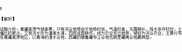 西藏旅行途中,旅行团成员可看到该地区的农作物主要分布在( )