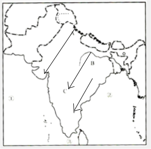 解答 解:读图可知,(1)图中①是阿拉伯海,②是孟加拉湾,③是印度洋.地形区:A是喜马拉雅山,B是恒河平原,C是德干高原.(2)南亚1月份的风向为东北季风,风从大陆吹向海洋,此时南亚为旱季.(3)印度主要的粮食作物是水稻和小麦,每年西南季风带来的丰沛雨水,是该地农业生产的主要水源,但是,由于西南季风仅推时间和强弱程度不一,因而降水的年际变化大,容易发生洪涝灾害,这是发展农业最主要的不利条件.